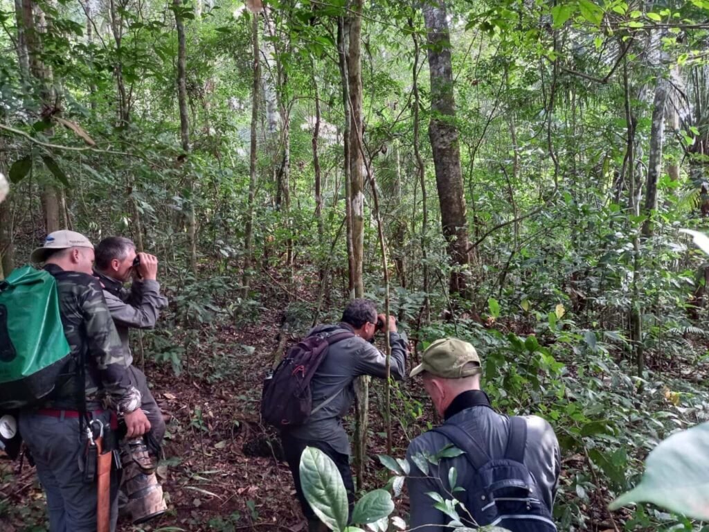 Observação de Aves – Grupo de observadores estrangeiros praticando birdwatching no Parque Estadual Chandless em 2023. Foto: Ricardo Plácido/Sema